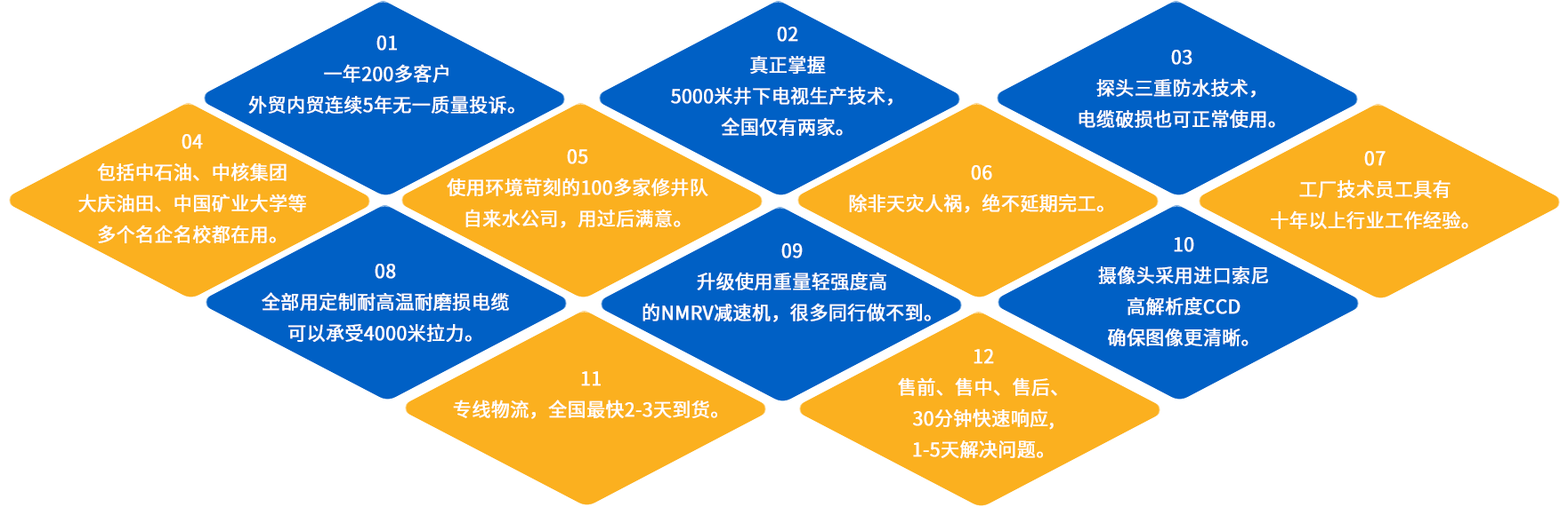 朋友本身就是行業(yè)內(nèi)的,對(duì)井下電視行業(yè)亂象深?lèi)和唇^,也知道客戶(hù)對(duì)假冒偽劣,以次充好設(shè)備的咬牙切齒,現(xiàn)在我們自己開(kāi)公司,做事必 須對(duì)得起自己的良知,真心真意做產(chǎn)品。精心選材,規(guī)范工藝流程,創(chuàng) 新三重防 水技 術(shù)等。