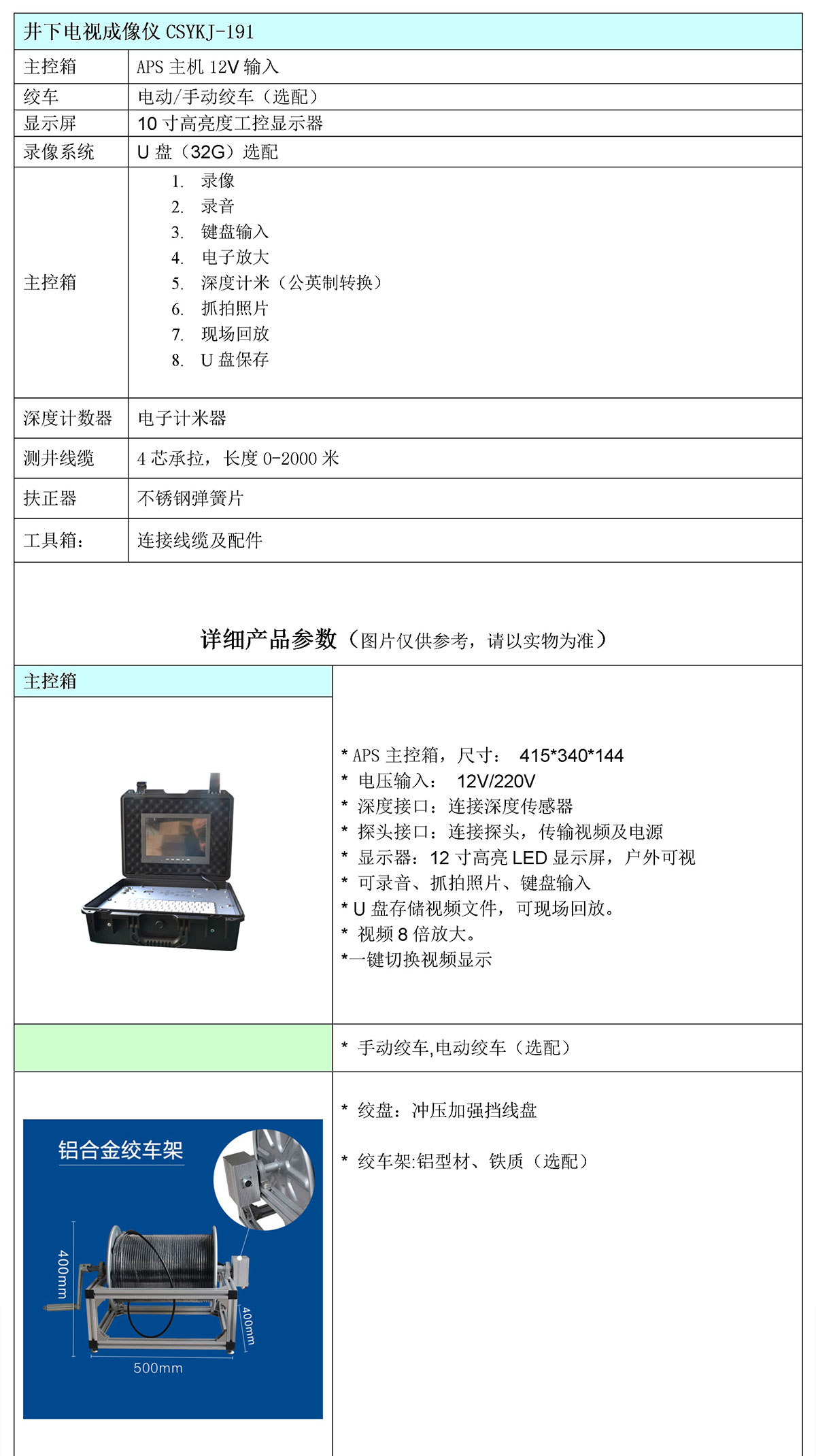 鋼質(zhì)電動(dòng)絞車(chē)全景井下電視(300~1500米) |